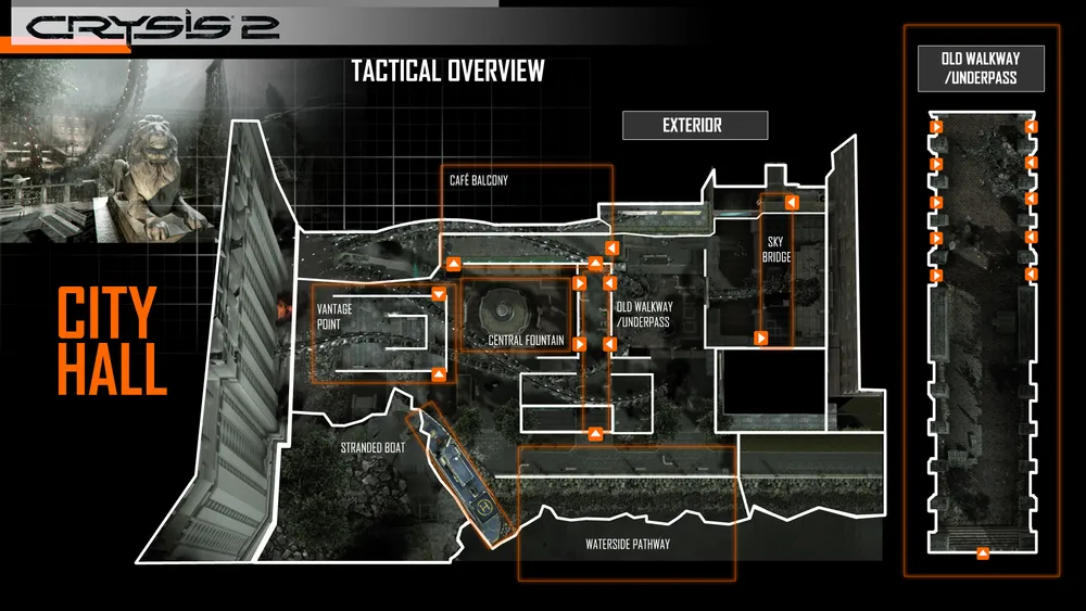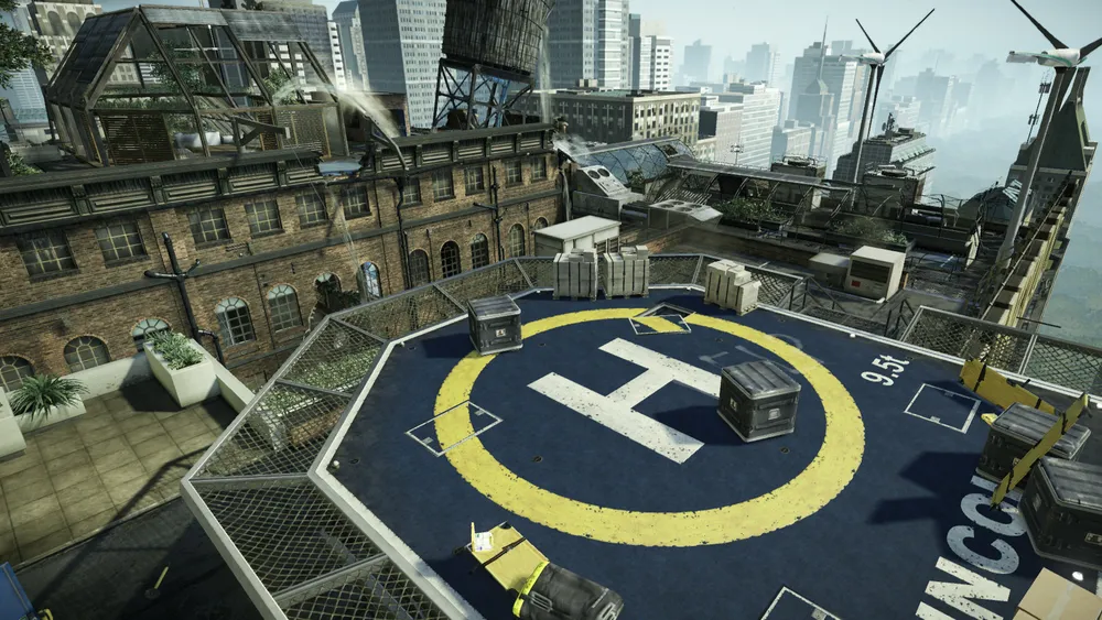 Теплицы - доминирующий центр этой крыши небоскрёба ,и забравшись на вершину можно увидеть почти всю область. Контролирование этой центральной высоты даёт основное тактическое преимущество, так что ожидайте ожесточенную борьбу в и вокруг неё. Карта маленькая, но экстремально вертикальна.