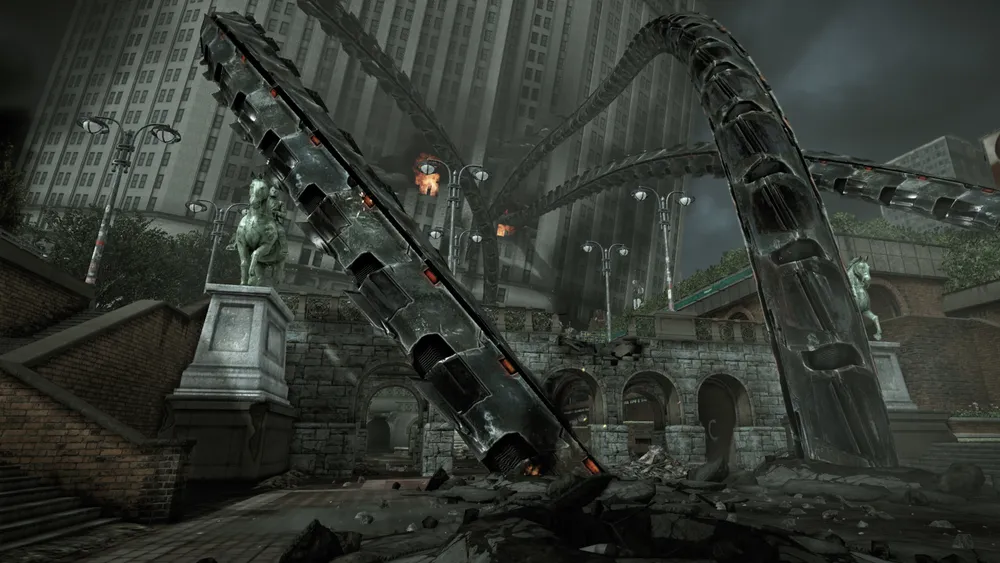 Добро пожаловать в Здание Муниципалитета, или то, что от него осталось.Эта карта идеально подходит для снайперов.Они могут использовать разрушенный небесный мост, чтобы получить выгодную точку на большей части уровня, в то время как настоящие авантюристы могут взгромоздить себя на инопланетную щупальцу. С таким большим количеством закрученных поворотов и изменениями высоты, враг может скрываться где угодно. Матчи в режиме Capture the Flag работают здесь особенно хорошо.