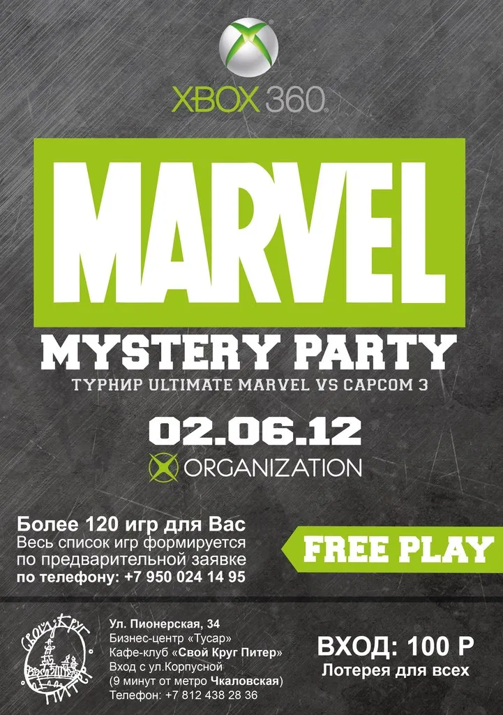 Xbox 360 MARVEL MYSTERY PARTY 2 Июня в 14:00 в клубе "Свой Круг" Питер, Турнир Ultimate Marvel vs Capcom 3