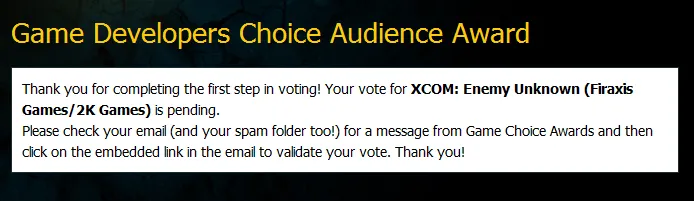 Кроме этого события на GDC 2013 с 25 по 29 марта (как часть этой конференции) будет происходить Game Developers Choice Awards, XCOM: Enemy Unknown само собой номинируется и даже не один раз.