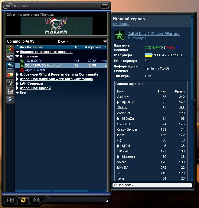 XFire это "ICQ для геймеров" с множеством полезных для игроков функций (для ярых фанатов Steam`а хочу сказать, что он не содержит и половины функций Xfire`а).