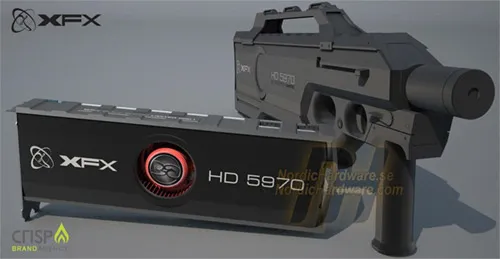 Как сообщает сайт nordichardware.se, поставляться XFX Radeon HD 5970 Black Edition Limited будет в упаковке, которая выполнена в форме автомата. Такой шаг будет подчеркивать, что самая крутая пушка у XFX.