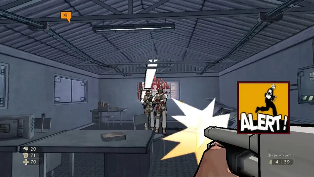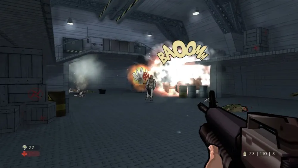 Визуально картинка и сегодня смотрится неплохо, на уровне некоторых инди проектов. На моей памяти — это вторая игра, которая стилизована под графический роман, первая была Comics Zone, и первый шутер в котором использована технология Cell-shading. Данной технологией пользуются уже давно, первой игрой с подобным эффектом была Jet Set Radio от компании SEGA для приставок Dreamcast в 2000 году, а некоторые могут сказать, что первопроходцем для сел-шейдинга был Kronos Digital Entertainment с fear effect для первой PS. Но в продукте от Kronos не применялась данная технология, а просто использовались обычные плоские текстуры имитирующие мангу.