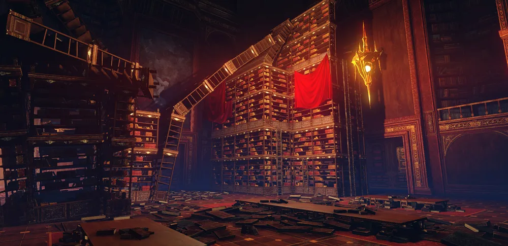 Здание библиотеки разделено на этажи, каждый из которых уникален и имеет свою историю. На первом этаже располагается Зал безграничных знаний, в котором древние маги обучались теории волшебства. Этажом выше находится Читальный сад, где жители города любили отдыхать и тренироваться. Третий этаж — самый мрачный. На нем размещен архив «Книги криков», содержащий самые мощные и опасные заклинания. Во время прогулки по библиотеке не забудьте осмотреться и в ее холле — здесь вы можете встретить Великого наставника Аранзеба и Кипрозы, покровителя ученых и чародеев — эльфа Александра, укрывшегося в библиотеке сразу же, как только Изначальный материк поглотила война.