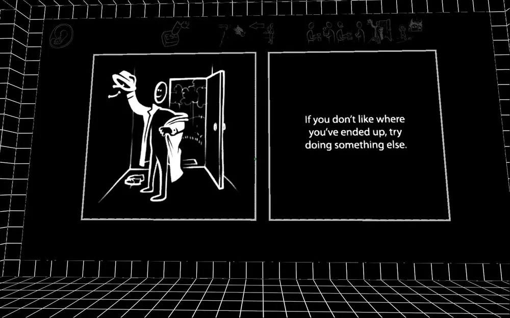 По мере продвижения игроку постоянно попадаются таблички с интересными надписями или картинками, которые лишь подбадривают игрока, но ни капли не подсказывают методы решения головоломок.