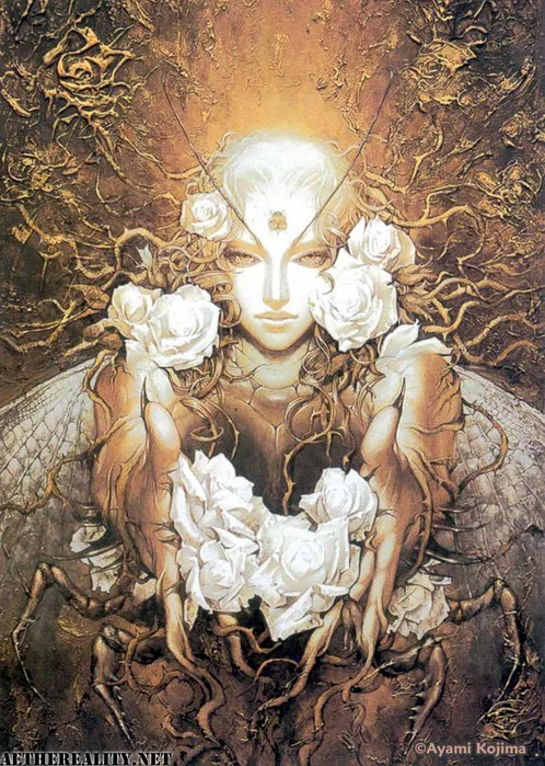 Ayami Kojima - японская художница-самоучка, известная своими работами к сериалу Castlevania игровой компании Konami (к слову, она никак не связана с однофамильцем, создателем Metal Gear Хидео Коджима из той же Konami). Перед ней поставили задачу кардинально улучшить и обновить дизайн серии в Castlevania: Symphony Of The Night. До этого художница уже была прославилась в Японии оформлением сборника самурайских новелл Михо Мидзуно, и даже попала в серию Japanese Color Kingdom book в качестве обладательницы уникальной техники рисования. Помимо прочего, создавала артбуки для известного аниме Trinity Blood, игры для Wii Samurai Warriors 3.