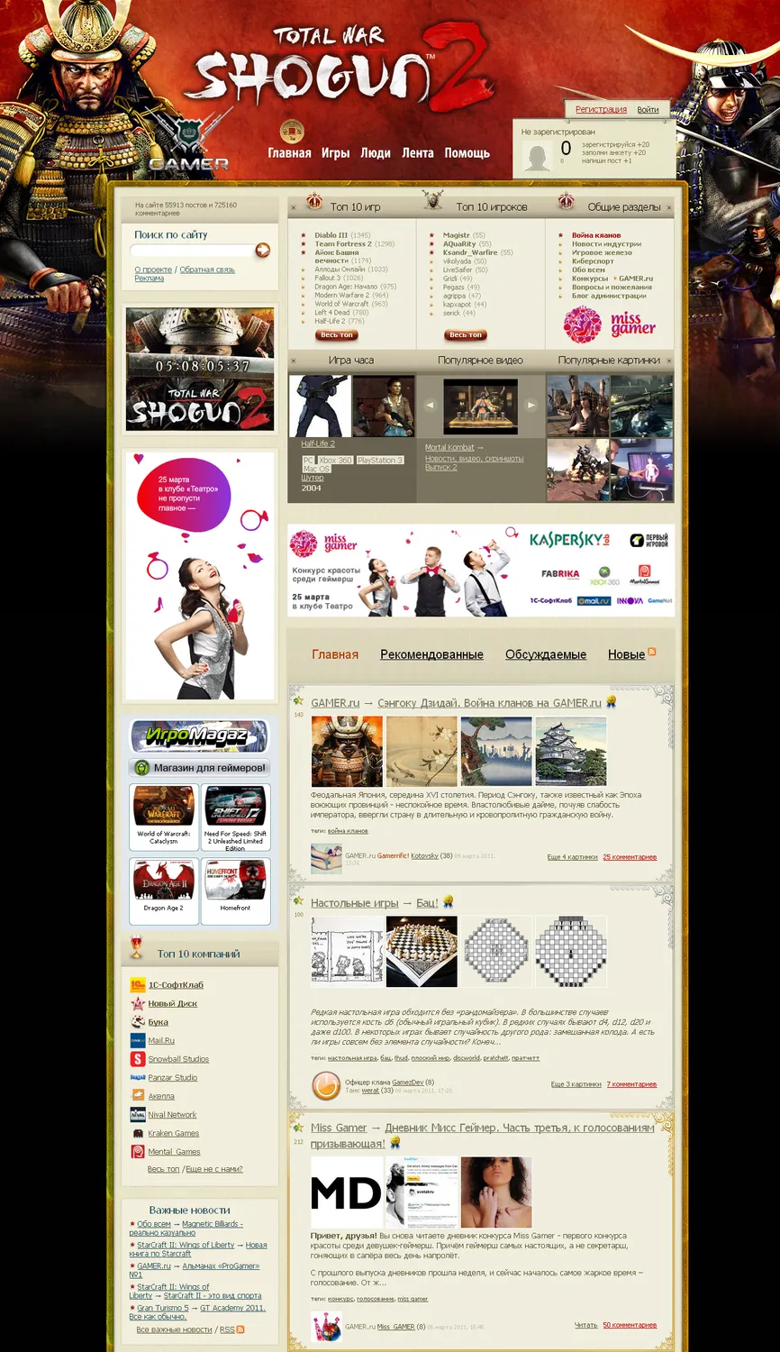 Как вы уже наверное могли заметить, GAMER.ru переоделся в самурайские доспехи Total War: Shogun 2. Мы надеемся, что вам понравился наш подарок и он будет радовать вас еще пару недель. Для тех, кто не обращает внимание на восточные культуры, показываем брендирование: