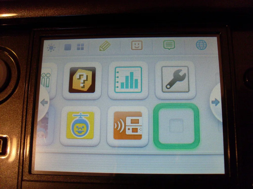 С сенсорным экраном связана чуть ли не главная странность консоли. Вроде бы совершенно новый девайс с передовым верхним дисплеем имеет совершенно устаревший по всем параметрам нижний. Понятно, что резистивный тачскрин с небольшим разрешением нужен, чтобы сохранить преемственность с сотнями игр для DS. Но это не отменяет его архаичность. Именно на нижнем экране располагается меню 3DS, очень похожее на то, что было в DSi. Шестьдесят слотов для устанавливаемых программ могут группироваться в удобное для пользователя количество рядов, иконки перетаскиваются стилусом и располагаются как удобно пользователю. В верхней части интерфейса расположены пиктограммы для некоторых настроек и возможностей. Например, туда вынесен браузер и регулировка уровня яркости. Вообще, самым приятным в меню является не его удобство и настраиваемость – а наконец-то выполненный перевод на русский (до сих пор в продукции Nintendo была русифицирована только инструкция). Переведено все, и страшных погрешностей вроде бы нет. Ну, кнопка переключения между внешними и внутренней камерами именуется «Внутрь/Наружу». Ну, встроенное в консоль руководство пользователя пока только на английском. Но это мелочи, абсолютно несущественные.