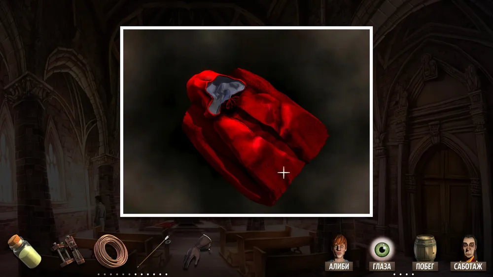 Необычно реализовано здесь управление: когда сначала фокусируешься на рассматривании объектов/персонажей и после этого выбираешь предмет из инвентаря, чтобы взаимодействовать им. Не припомню, где бы такое ещё было — более привычно перетаскивать предметы мышкой, чтобы уже так комбинировать их между собой или использовать на локации. Решение загадок в результате напоминает конструктор: выбираем точку на объекте, появится ячейка для заполнения которой выбираем предмет из инвентаря, дальше может возникнуть вопрос — зачем это делать? если удалось получить нужную информацию, то добавляем в новое окошко обоснование — план, метку источника информации и тому подобное — для чего затеваем манипуляции, потом могут понадобиться ещё какие-то предметы и для них появятся свои окошки. Например, мы хотим обезвредить бандита — как его временно деморализовать?.. Набросить спасательный круг, чтобы он не успел руками достать пистолет, потом ударить веслом, потом добавить чем его связать... И после заполнения такого алгоритма решения загадки можно смотреть "мультик" в виде игрового ролика с претворением плана в действие.