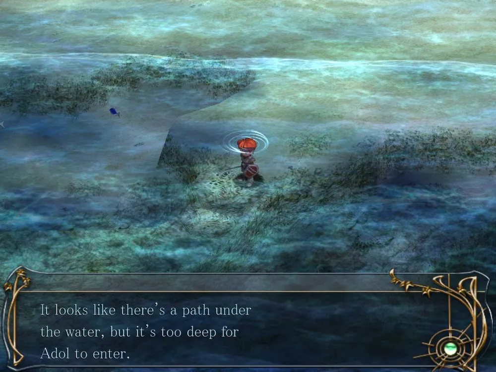 Мы играем за Adol`а и получили возможность прыгать. Игровое окружение стало трехмерным. И здесь мы начинаем свое странствие, очнувшись после кораблекрушения на экзотическом острове. Нам помогают прийти в себя, ну а взамен мы их спасем в конце игры.