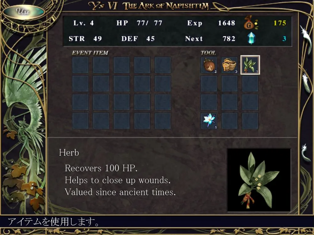 Еще одна прелесть многих ролевых игр – одевать броню и использовать всевозможное оружие – мечи, кулаки, копья и так далее. В YS с этим все в порядке, вы получите изрядную порцию удовольствия от этого процесса.