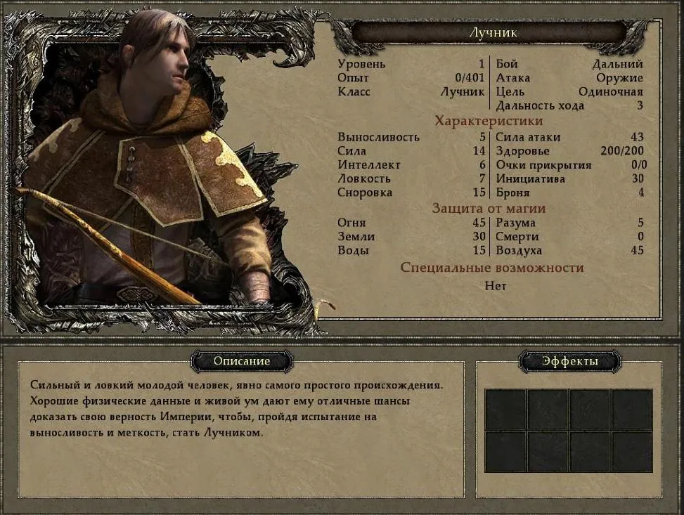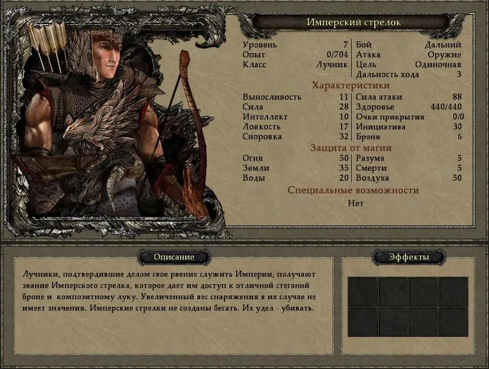 На этом с воинами мы закончили, переходим к лучникам, вернее лучнику, так как имперский лучник не имеет разветвлений в своих ветках.