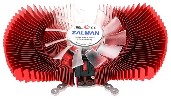 По фото ниже можно сравнить оригинальный cooler, который поставлялся с видеокартой(сжечь! доводил мою любимую geforce аж до 120 градусов!) и новый ZALMAN: