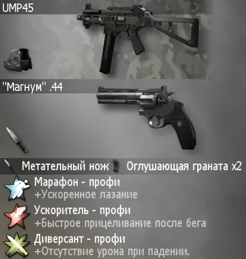 В качестве снаряжения советую взять стан гранаты (ими, в отличие от ослепляющих, намного проще пользоваться) а также второй подарок разработчиков - метательный нож. Но о нём позже.