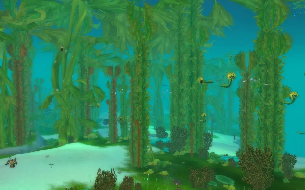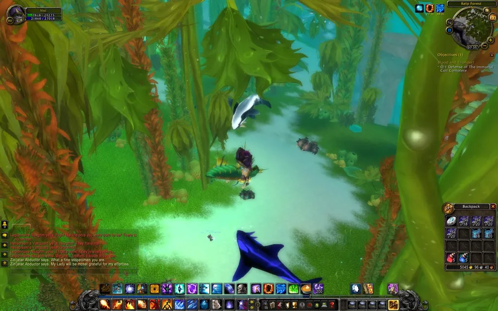 Тут 90% локаций находится под водой, поэтому важно сделать первый квест. Нам дадут бафф, который позволит дышать под водой и плавать с 60% скоростью под водой. Ну и начинаются стандартные квесты пойди, принеси, убей. Правда, подводные пейзажи мне понравились. По мне это было чем-то новым. После 5 лет игры в WoW то.