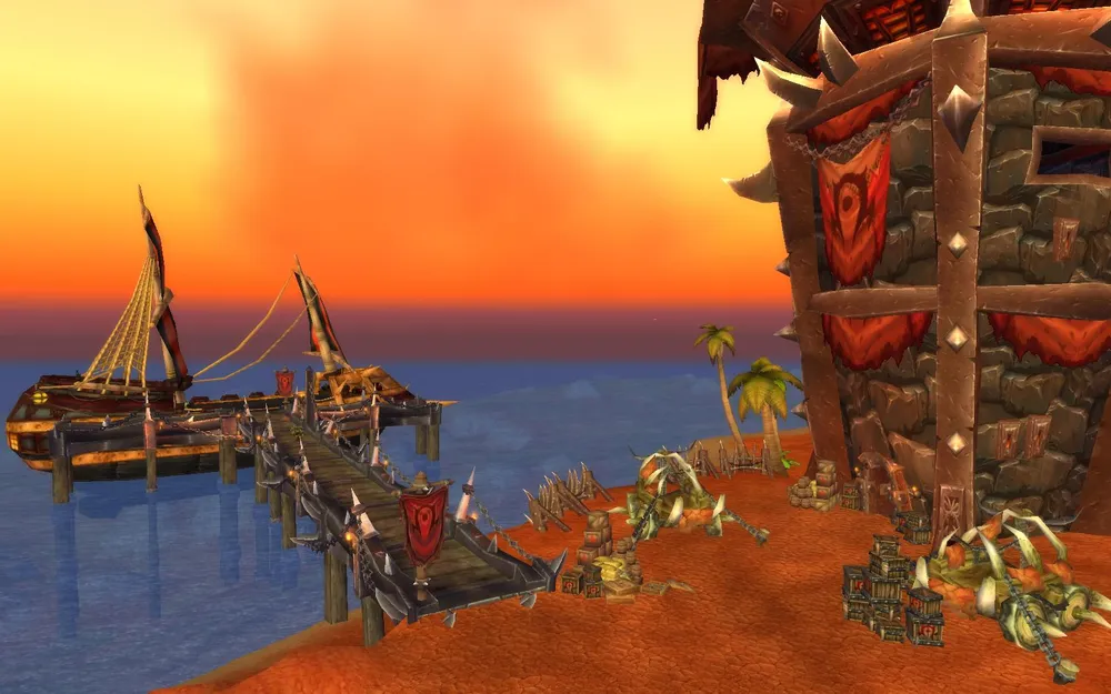 Начав премейдом я оказался у главных ворот в Оргри. Тут можно сразу взять квест и отправиться в Вайшир, но я решил с начало осмотреть город, который сильно изменился. Город не слабо переделали. Дизайн совсем другой…более суровый. Зал вождя теперь на месте банка, а банк передвинули. Ещё в городе можно встретить районы гоблинов, троллей и тауренов. Дирижабли кстати, теперь, тоже прямо в городе. Ну, вобщем немного полетав над городом, я таки отправился в Вайшир. Плывя на корабле мы посмотрим не большую скриптованную постановку, где наш корабль топит кракен и дальше мы окажемся на затонувшем корабле.