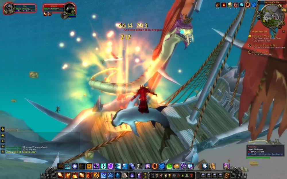Забавный квест тут будет оседлать акулу и при помощи неё пожирать наг. После этого квеста сразу пачка новых…а я то думал я уже прошел локацию. Ждет нас встреча с нагами. Некоторые квесты кстати делаются прямо на ходу. Т.е. вы взяли где то на дне квест и сделав его тут же самому себе сдали и получили награду. Не обошлось и без багов. В одном квесте пришлось долго искать, где его сдать. Спасибо форуму беты Правда следующий квест тоже багнут. В конце этого квеста мы должны получить маунта Морской Котик и видимо отправляться в следующую локацию…