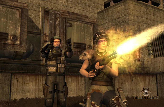 Fallen Earth игра сама по себе довольно старая, но тем не менее очень красивая, с интересными квестами и уникальными персонажами. Я, играя на ЗБТ, ни разу не встретил одинаковых персонажей, а всё дело даже не в кустомизации, как в APB:R, а в том, что одежды можно на себя надеть даже больше, чем TES: Morrowind. Вас ждут плащи, солнцезащитные очки, наколенники, наплечники, нарукавники и многое-много другое.