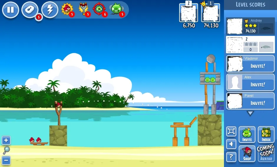 Тем не менее, на Facebook птицы залетели не по инерции, а с умыслом. Функционал сети открывает дополнительные возможности. Пока выстреливаемые из рогатки пернатые чертят в небе траектории и валятся на фортификации укравших их яйца свиней (зеленых, ясное дело, из-за популярного в 2009 году гриппа), вы коситесь на колонку справа — летопись успехов друзей. Да, человек с самым высоким рейтингом и короной — настоящий (и общепризнанный) гений, но все равно возникает предательская мысль сбегать в магазин и купить выводок разносящих уровень к чертям свинячьим Могучих Орлов за 0. Ах да, в Facebook-версии Angry Birds есть эксклюзивные уровни, но это уже частности (вроде подарков на День коммерциализации романтики).