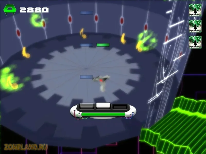 Так как перед нами ритм-игра перво-наперво стоит покопаться в своей музыке и выбрать свои любимые треки. Рекомендую начинать со спокойных мелодий, чтобы разобраться в игре, а потом можно уже выбирать и что-нибудь забойное. Геймплей в игре прост как два пальца об асфальт – летите вверх по экрану, расстреливаете врагов, да слушаете свои любимые мелодии – вот и всё. Все хитрости кроются в мелочах. Можно например несколько бонусов к громкости звука и силе стрельбы вы получаете ультимативную лазерную пушку, которая равномерно прожаривает врага до хрустящей корочки, но только при условии того, что в этот момент ваши колонки разрывает громкость музыки . Если звук тихий, то пушка будет помалкивать, и только раз в две-три секунды выдавать бедный «плевок». Для накопления очков стоит собирать выпадающие из поверженных противников бонусы-множители. Множители можно накопить и с помощью определенных действий – к примеру, за «Выживание» и «Сорвиголову» - два ваших состояния, которые появляются при определенных условиях. Для «Сорвиголовы» надо пять секунд не вести огонь (а потом еще подождать, пока шкала не заполнится), ну а «Выживание» дается само по себе каждые 20 секунд. Ну и еще есть традиционный бонус – бомба, относящая к праотцам весь экран. Даром что редко попадается.