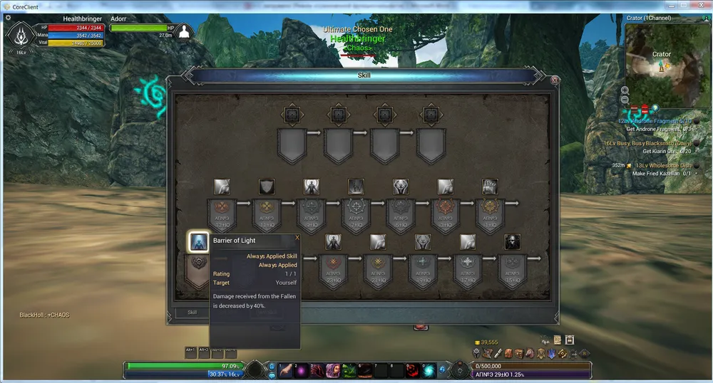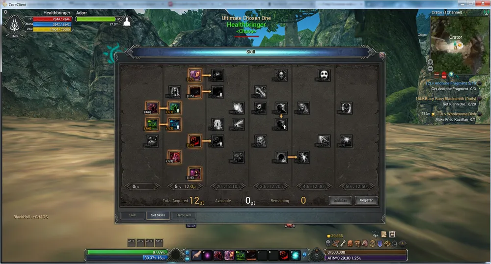 Из приятных особенностей данной игры следует отметить панель с 2 полосами: заполнения общего опыта (Exp) и совершенствования умений (Potential points). При убийстве мобов накапливаются Potential points, которые можно сконвертировать в Skill points и выучить/усовершенствовать умения.