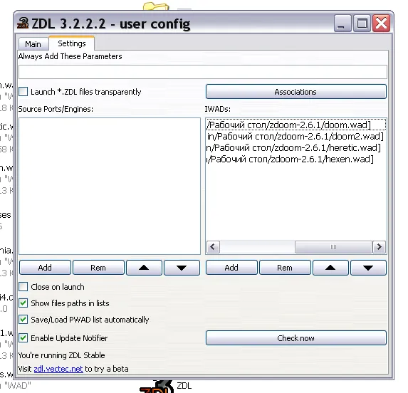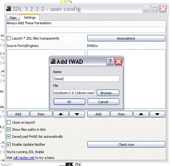 Для начала идем на страничку zdoom wiki и скачиваем сам лаунчер. Распаковываем его в папку zdoom. Запускаем, переходим во вкладку Settings. Теперь нам нужно добавить основные вады, для запуска сторонних. Для этого нажимаем на кнопку Add. В появившемся меню Add IWAD нажимаем Browse и через него выбираем doom.wad в нашей папке со zdoom.