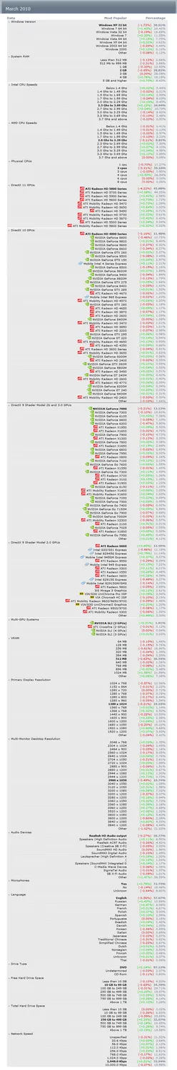 По сложившейся годами традиции массовой долей давят двухядерный интел и десятидириксовая нвидиа