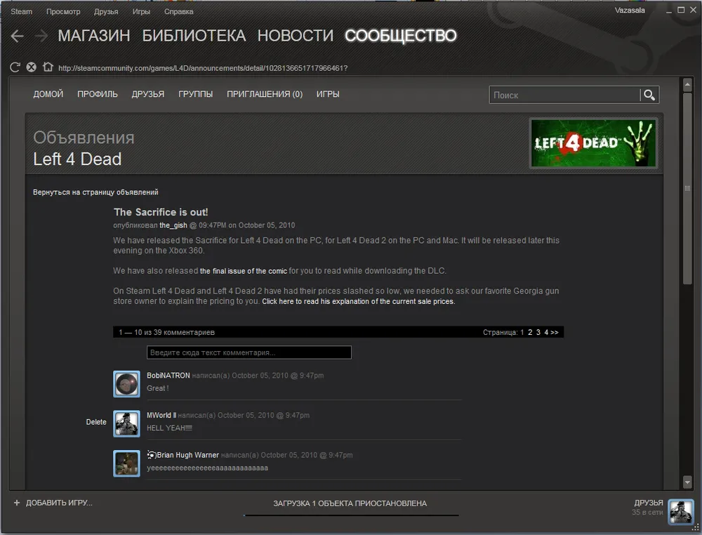 Официальная группа Left 4 Dead в Steam так же сообщила о релизе DLC: