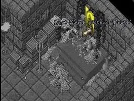 Стою, копаю. Появился стенающий призрак. Красный. Сильно испугался. Незнакомый мне человек на коне о чем-то говорит с призраком. Неожиданно у меня начало получаться понимать слова призрака. Может быть, я медиум??? Призрак сказал «дай ему», и мне дали scroll of Resurrection и попросили прочесть его на призрака. Честно пытался прочитать. Но тяжело, тяжело мне дается чтение. Очень неудобно читать по слогам, заглядывая глазом в дырочку. Долго думал, в какую сторону вращать свиток при чтении. Плохо, что у меня всего 16 интеллект, а не 18. При 18 я бы обязательно понял, что эту свернутую бумажку надо развернуть на 180 градусов и пытаться смотреть через свиток на призрака другим глазом. Кажется, призрак на меня обиделся…