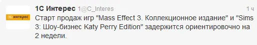 Предзаказ Mass Effect 3 N7 Collector's Edition был официально запущен в двух магазинах: 1C-Интерес и Ozon по цене1799 рублей. Оба сайта закрыли предзаказы еще осенью, и с тех пор новостей о коллекционном издании не поступало. Но сегодня официальный твиттер 1С-Интерес пролил свет на судьбу коллекционного издания Mass Effect 3: