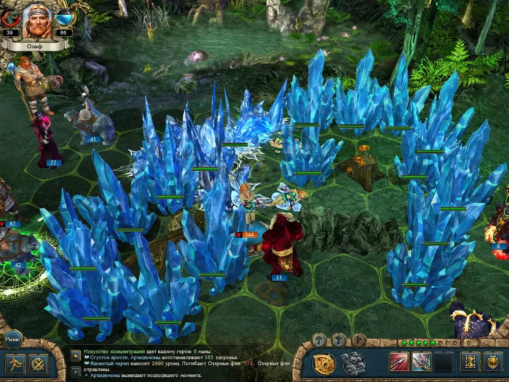 Знаете ли вы, что заклинание «Ледяные шипы» третьего уровня в отдельных случаях может оказать неоценимую помощь? Особенно актуально применение шипов при встрече с лесными феями. Последние, как правило, путешествуют огромными отрядами, благодаря полёту игнорируют ловушки и если доберутся до ваших бойцов – жертв не избежать. Очень важно на первом же ходу дважды применить «Ледяные шипы», постаравшись окружить феечек.