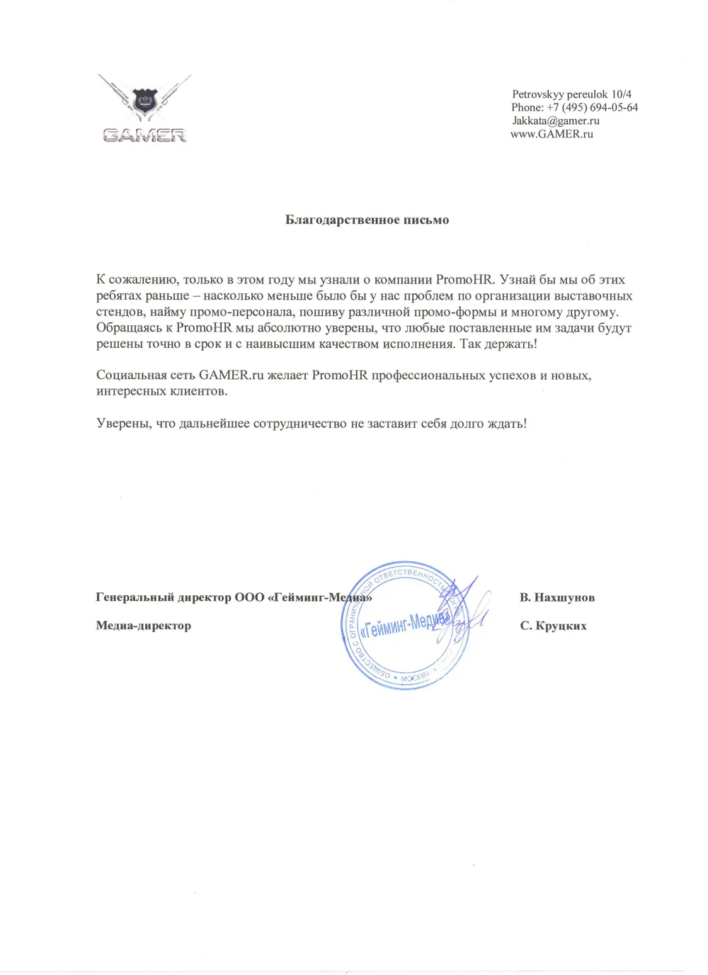 ...ООО «Гейминг-Медиа» (а именно так официально называются наши «сферические админы в вакууме») периодически пользуется услугами promoHR.
