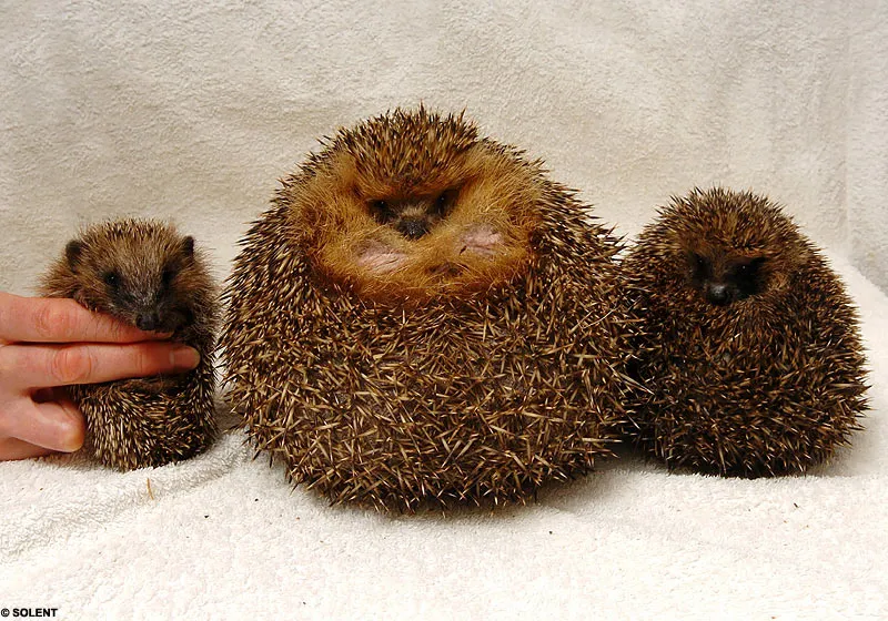 ○ Колючки и сворачивание в клубок – это природная защита ежиков от хищников. Однако она не всегда помогает – некоторым животным удается развернуть свернувшегося в клубок ежика. А лиса, говорят, даже откатывает ежика в воду, чтобы он развернулся.