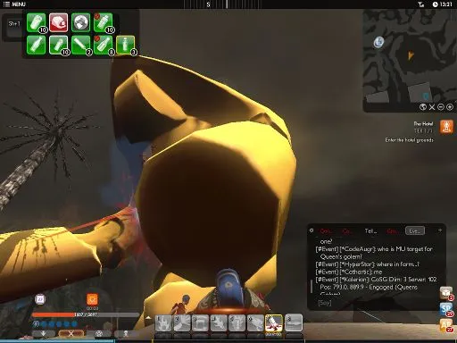 Золотой Голем периодически появляется в различных локациях мира и все, принявшие участие в его уничтожении получают уникальный лут (не говоря уже об опыте и денежной награде). Присоединяйтесь к каналу чата Event (команда /chat join event) чтобы не тратить времени на поиски.