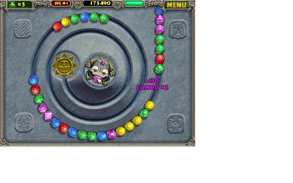 Вчера прошел игру Zuma Revenge. Получилась отличная казуалка очень похожая на первую часть, но более полная и касивая. Звук в игре практически не изменился, но это не портит игру. В игре полность заменили графику, теперь она стала трёхмерной. Также новая Зума поддерживает широкоформатные мониторы.