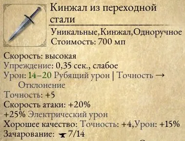 Причём, судя по всему, вручается копия, так как кинжал всё равно остаётся в рюкзаке Гарета. (Так персонаж заработал частичку репутации обманщика — в обмен на замечательное оружие.)