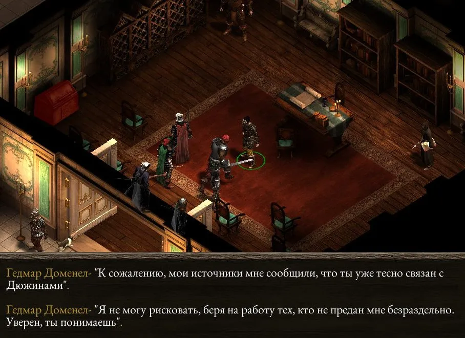 Следующее задание Доменелов — забрать из соседнего дома уникальный камень; ничего сложного при наличии железной кошки с верёвкой. Последнее задание выдаст лично глава мафиозного клана, Гедмар Доменел - убить маршала Венфельда (периодически приходит молиться к алтарю в крепости рыцарей); ваша репутация в глазах Рыцарей Горна и Дюжин станет почти враждебной с невозможностью присоединения.