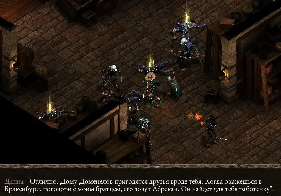 А что же Дюжины? Увы, улучшить свою репутацию в их глазах не получится; да и лук потеряли… К этому моменту в казне должно быть достаточно золота, чтобы купить не менее хороший лук у Играна, на рынке Копперлейна.
