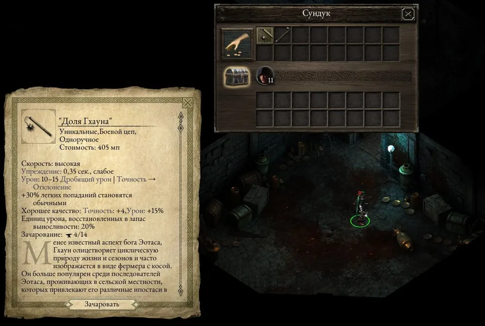 (Следующий её уровень требовал поднять решительность до двадцати единиц, заодно герой «провернул» операцию с кинжалом, обещанным Горди.) В самом низу храма Гарет отыскал уникальный цеп — неплохое оружие даже без улучшения.