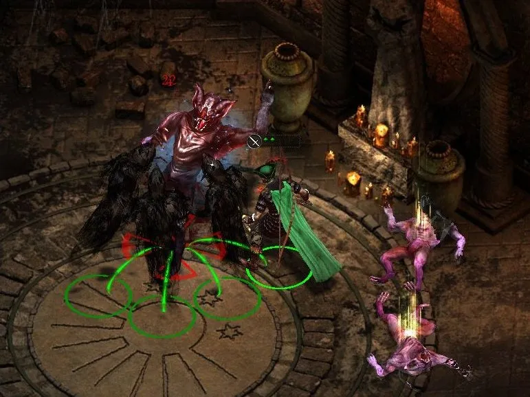 Заходим в храм только героем, беседуем с настоятельницей (?) и получаем три новых квеста (после чего можно перебить всех культистов, ради брони и оружия). Теперь можно идти в лечебницу. Опять разговор, со статуей главного смотрителя, опрашиваем всех внизу (попутно решается личный квест Алота), но главного подозреваемого нет в доступных комнатах. Вновь беседуем со статуей, открываем запертые ранее двери и находим Азо; причём в его комнате спрятано сразу два уникальных предмета: оружие и доспех.