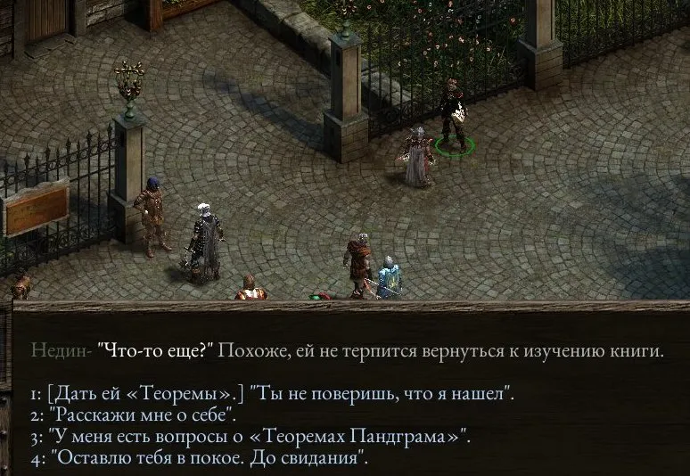 После этого возвращаемся к Гримде, получаем доступ в закрытую ранее часть дома и похищаем из сундука теорему Пандграма; которую относим к Недин, стоящую у лечебницы.