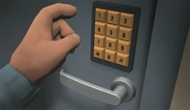 Цифра 'один' на табло сильно подпорчено. Это обусловлено тем, что пароль от двери 1111.