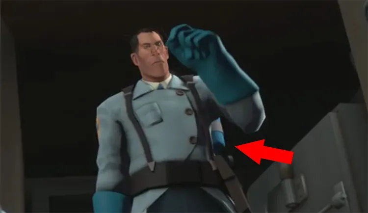 Второй раз его уже не было видно, но зато мы увидели его кисть. Это определённо кисть Снайпера, потому что только он носит часы.