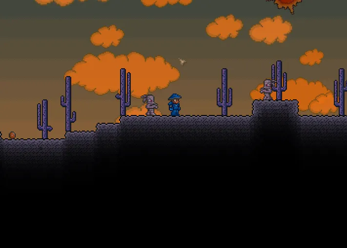 И я считаю обилие пещер в Тераррии довольно-таки существенным минусом, путь исследования становится витиеватым и безыдейным, игрок становится курочкой который, ну, возможно проклюёт что-то валяющееся под ногами.)