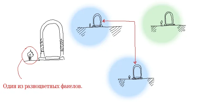 Второй вариант позволяет внести элемент случайности при перемещениях если поставить несколько разноцветных факелов. (Или даже установить цветовой код)