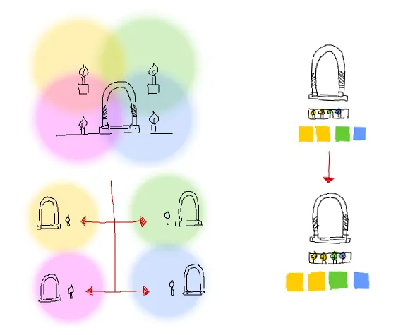 Первый вариант порталов подразумевает создание самой входной арки из действительно редкого материала, скажем, статуи ангела (У которой применения нет вовсе.) и использования драгоценных камней для индексирования порталов.