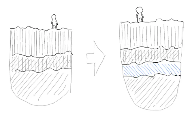 Минус такой игры в том, что игрок напрочь игнорирует возможность создания инструментов из металла и платины. Изучив графики с интенсивностью руды на глубине, я узнал что основная концентрация золота и прочих руд начинается между каменно-земляным и каменным слоем, поэтому у меня в голове возникла идея создать между каменно-земляным слоем и каменным водоносный горизонт пересекающий всю карту в качестве террейного ограничителя который требует более вдумчивого подхода. :)