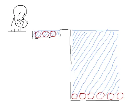 И как же мне во время игры в хардкорном режиме где персонаж умирал безвозвратно, порой не хватало веревки, банальной веревки которую можно было бы скрафтить с помощью травы и веретена. Соблюсти простые формальности, сделать выступ как на картинке и вуаля, спокойный спуск по веревке которая забирает нужное кол-во веревки из инвентаря пока игрок спускается все ниже и ниже.