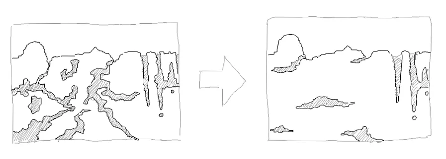 С низким кол-вом пещер и водяным горизонтом игроку придется немного чаще быть на поверхности или ближе к нему, игрок может решить наведаться к океану или же просто совместить полезное с приятным, возьмет марш-бросок в одну сторону с целью проконтролировать ситуацию на дальних участках.) Небольшая россыпь "ничейных" зданий на пути вознаградит любопытного игрока.