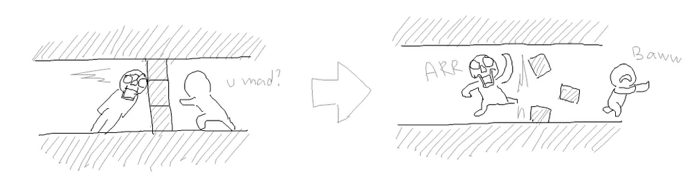 Так же я задумывался над проблемой слишком уж легкого отгорожения врагов в авральных ситуациях, опытный игрок мгновенно может создать 4х5 комнатку для себя и тем самым максимально обезопасить себя от всех поползновений почти любых монстров. Соответственно, после земляного слоя начнутся мобы которые будут способны пробить (скелеты, скелеты-шахтеры, мама-слаймы и выше по уровню опасности) стены в 1 клетку.